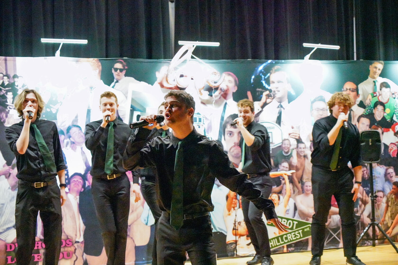 The Spartan Dischords have four big performances a year. First is Aquapalooza and then the Christmas Showcase, after that is the Valentines show in February and the Final performance of the year is called the Big Show. They also perform at other various events sometimes for Greek life and have even performed at the Breslin Center half time show during basketball season.